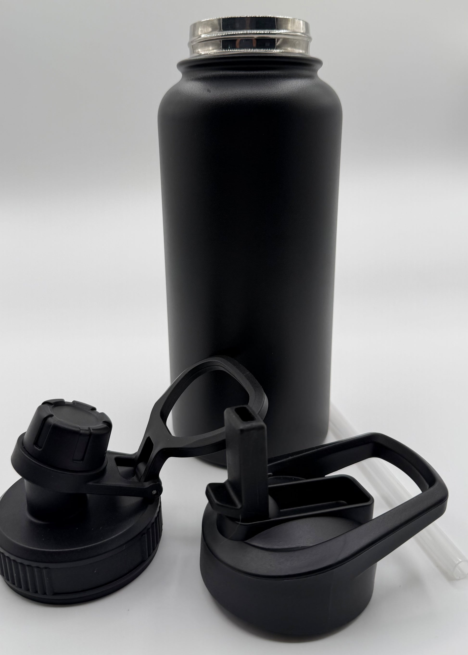 Stay hydrated in style with this 32oz insulated water bottle made from top-notch stainless steel—tough enough to last and eco-friendly to reuse! Switch between the straw lid for easy sipping and the wide mouth lid that fits ice cubes and makes cleaning a breeze. Thanks to vacuum insulation, your drinks stay hot or cold for hours without any pesky condensation. Leakproof and ready for action, it’s your perfect sidekick for workouts, camping trips, office hours, and wherever life takes you.